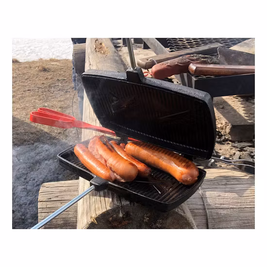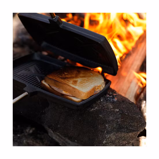 När du vill ha varma mackor på utflykten! Extra tåligt utförande i gjutjärn som tål höga temperaturer. Handtag av trä.